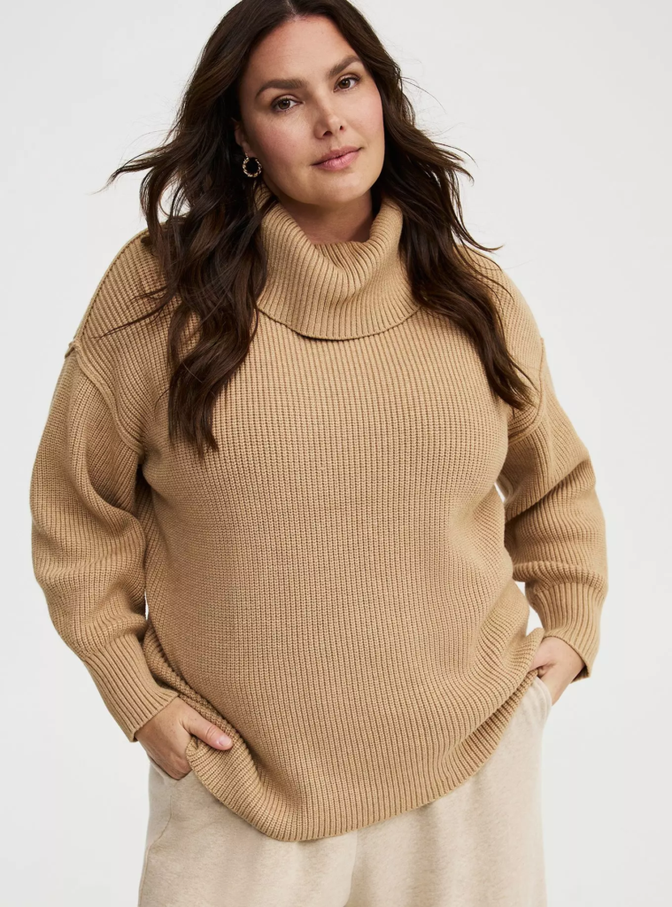 Oversized sweaters can sometime be bulky, heavy, and impossible to layer under winter coats. Plus-size shoppers are often limited to shapeless or thin knit sweaters that don’t retain warmth. This mix of fashion and active options is anything but.