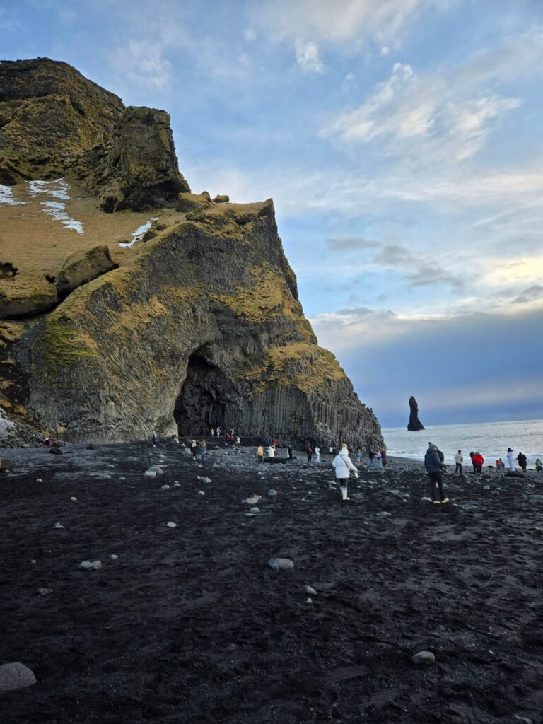 Two months ago, I visited Reynisfjara, the black-sand beach, for the first time on a FGT Group Tour. I was able to get a few individual photos for anyone who wanted them, but we didn’t get a group photo. Now, I regret it because the coastal winds and erosion have altered the beach and swept away its iconic black sand.